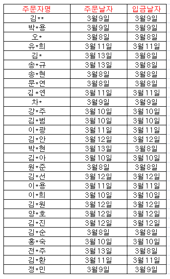 ±ÝÀÏ ÇØ¿î¹è¼ÛÃâ¹ßµÈ °í°´´Ô/ȸ¿ø´Ôµé ÁÖ¹®ÀÚ¸í Á¤º¸ ¿Ã·Áµå¸³´Ï´Ù.