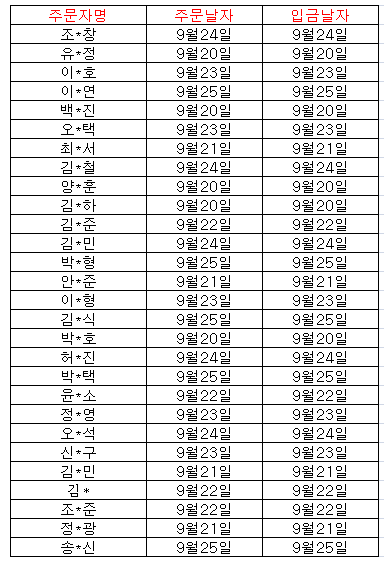 ±ÝÀÏ ÇØ¿î¹è¼ÛÃâ¹ßµÈ °í°´´Ô/ȸ¿ø´Ôµé ÁÖ¹®ÀÚ¸í Á¤º¸ ¿Ã·Áµå¸³´Ï´Ù.