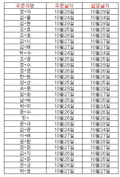 ±ÝÀÏ ÇØ¿î¹è¼ÛÃâ¹ßµÈ °í°´´Ô/ȸ¿ø´Ôµé ÁÖ¹®ÀÚ¸í Á¤º¸ ¿Ã·Áµå¸³´Ï´Ù.