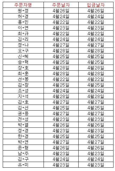 ±ÝÀÏ ÇØ¿î¹è¼ÛÃâ¹ßµÈ °í°´´Ô/ȸ¿ø´Ôµé ÁÖ¹®ÀÚ¸í Á¤º¸ ¿Ã·Áµå¸³´Ï´Ù.